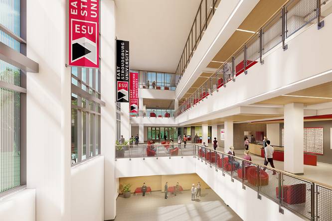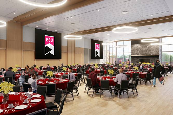 ESU’s new University Center will be a state-of-the-art centerpiece for our entire campus community and the community-at-large to enjoy. The four-story, 109,233 square-foot building will be home to the University Bookstore, a theatre, food court, an art gallery, event space, meeting rooms, conference spaces and lounges. The facility will improve the university experience for everyone, with improved spaces and the ability to enhance services for our students.